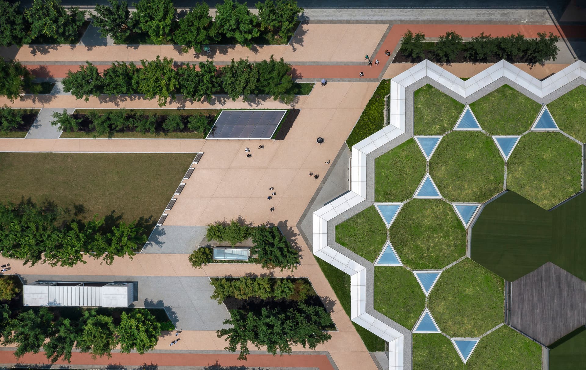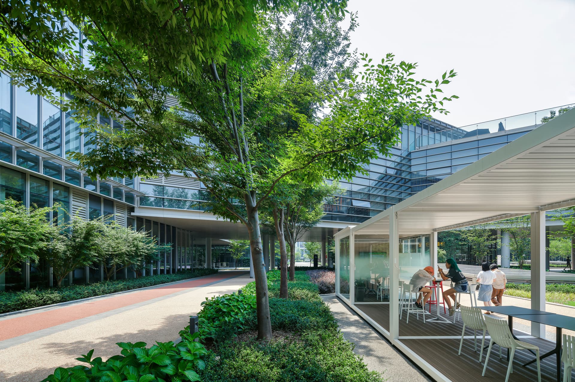 Access to nature and opportunities for movement can positively impact creativity and focus, yet most office workers are typically disconnected from the natural world during the workday. At a Zhejiang-Based Large Internet Company Campus, each employee’s workspace is less than a minute from outside green spaces and all work stations are close to windows that provide access to natural daylight, overlook greenery and open to let in fresh air and natural ventilation.